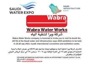 Wabra Water Works company is honored to invite you to visit its booth No. (4C19) at the Saudi water and infrastructurs expo 2024 exhibition to be held in 24-26 sep 2024, riyadh international convention and exhibition center.